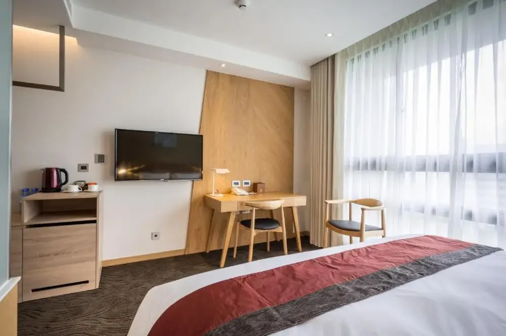 房間不小,剛剛好。距離南港車站只有幾百公尺,交通便利,房間也整潔乾淨。星期六的房價約4000 元,有附早餐,也還不錯吃。